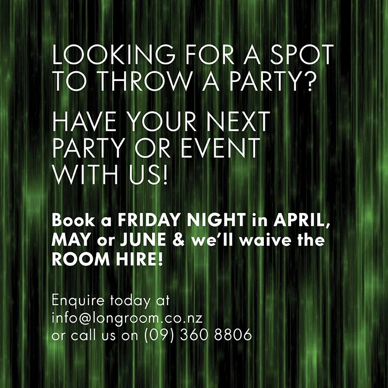 Whether it’s a birthday, work do, engagement, private party or celebration with mates, Longroom delivers the atmosphere, drinks, food options and central Auckland location to make it a night worth talking about.
